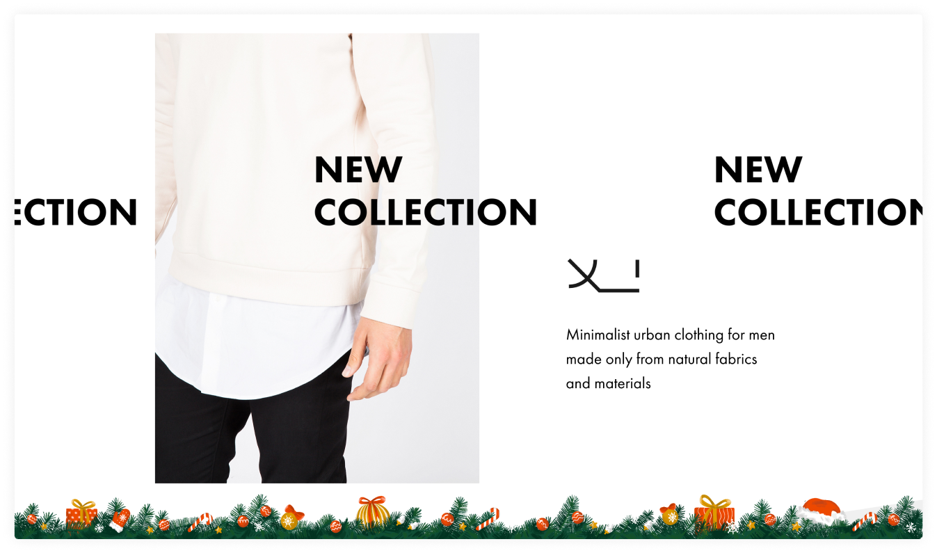 Украсьте главную страницу сайта — добавьте блок с вереницей из еловых веток, ёлочных игрушек, конфет и подарков. Декор будет расположен в нижней части браузера, поэтому не перекроет важные элементы сайта. Уютное и новогоднее настроение на странице — это несложно.