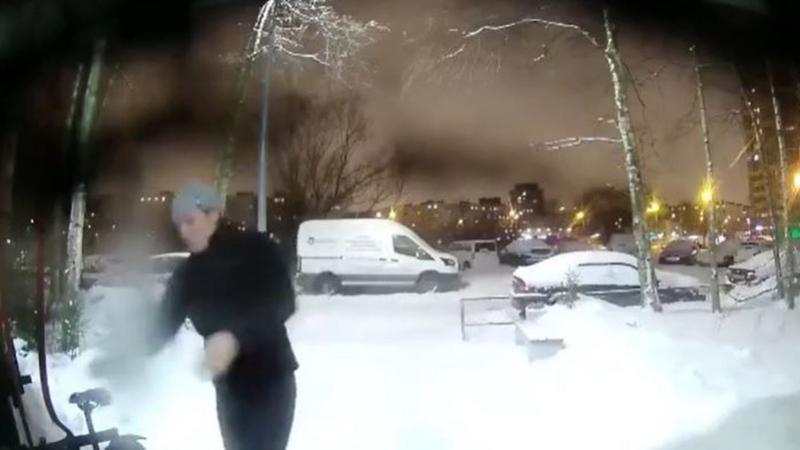 На кадрах видно, что происшествие случилось 6 января в одиннадцать часов вечера. У второй парадной двери дома №33 на Купчинской улице курьер доставил клиенту заказ.