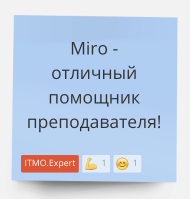 Интересно, что некоторые преподаватели используют Miro как интерактивный учебник на протяжении всего курса, умещая на одной (практически бесконечной) доске все материалы по дисциплине. Это удобно, поскольку позволяет студентам быстро найти информацию по предыдущему занятию.