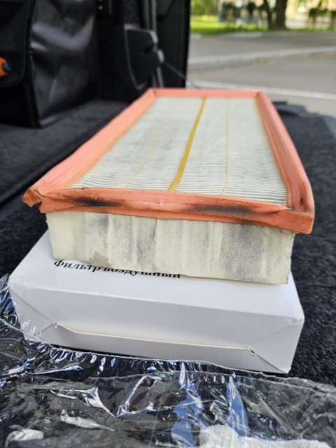 Фильтр пробежал 12 тыс. оригинал. Загрязнён не сильно, но самое печальное, что при его установке криворукий мастер ЛР Вест не аккуратно его установил. В результате — замялась кромка фильтра. Теперь во… Читать дальше