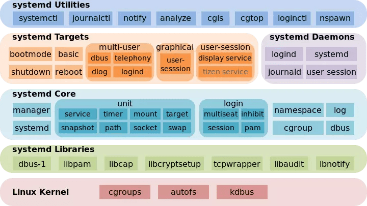- Подсистема инициализации. Будь то Init.d, Systemd или любое другое подобное программное обеспечение, необходимо иметь подсистему над ядром, которая отвечает за запуск всех процессов (демонов), необходимых для начала работы ядра. Без него у нас будет только много строк кода, которые не будут выполняться.