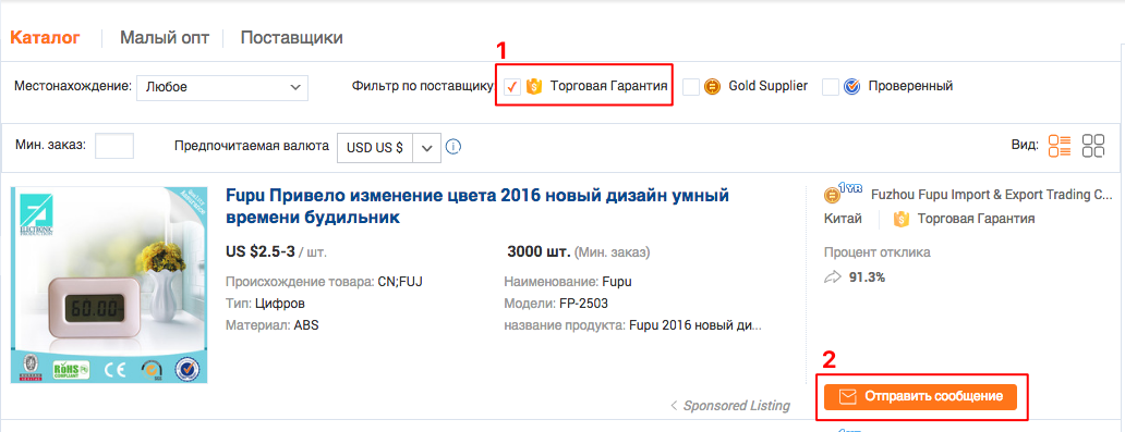 Шаг 1. Найдите поставщика с Торговой Гарантией и свяжитесь с ним