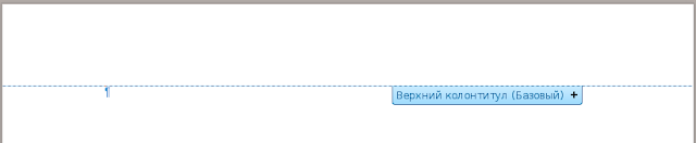 Для добавления колонтитула щёлкните по верхнему или нижнему полю. На появившейся голубой панели нажимаем на «Верхний колонтитул (Базовый)», если вы хотите ставить номера внизу страницы, то все описанные действия выполняйте для нижнего поля и нижнего колонтитула.