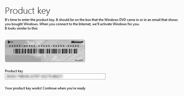 Рисунок 1. Ключ продукта из регистрационной формы Microsoft Windows 8.