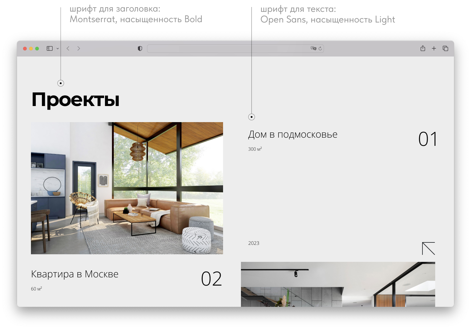 Страница проектов интерьерного бюро.