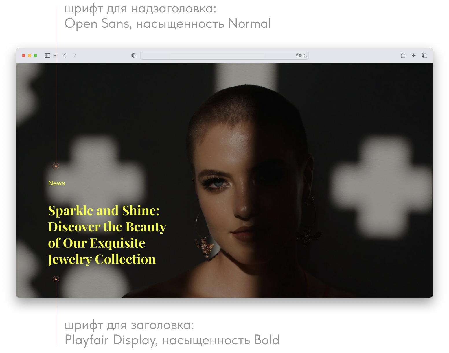 В примере используются: Playfair Display для заголовков и Open Sans для надзаголовков.