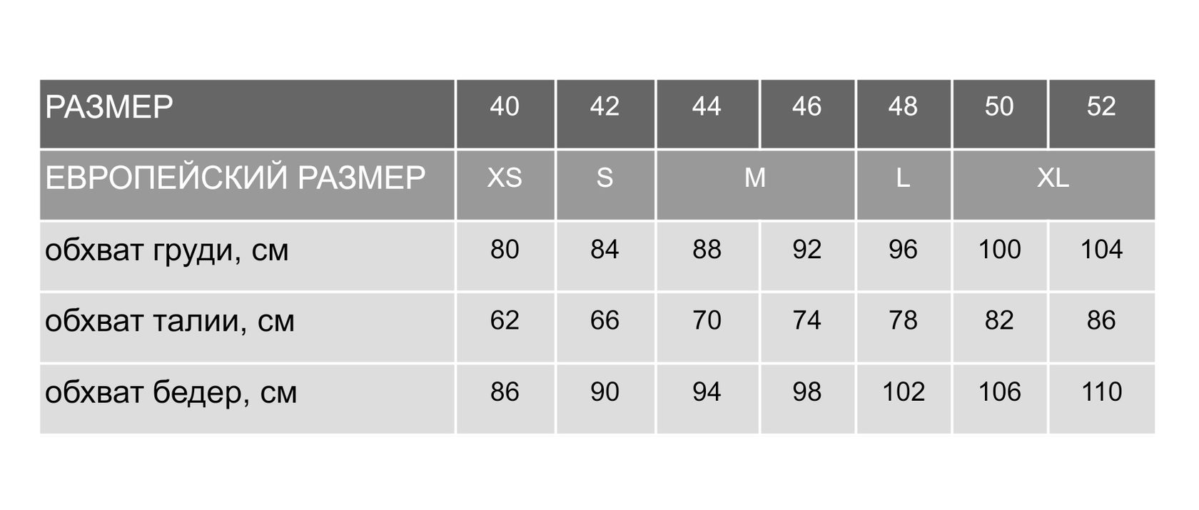 Справочник по размерам