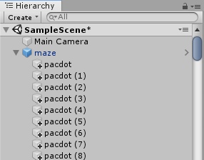 Создадим типичный лабиринт Pac-Man. Для начала, необходимо создать в папке Assets папку Sprites, далее щелкаем правой кнопкой мыши на картинку выше, выбираем «Сохранить картинку как. » и сохраняем ее в папке Sprites.