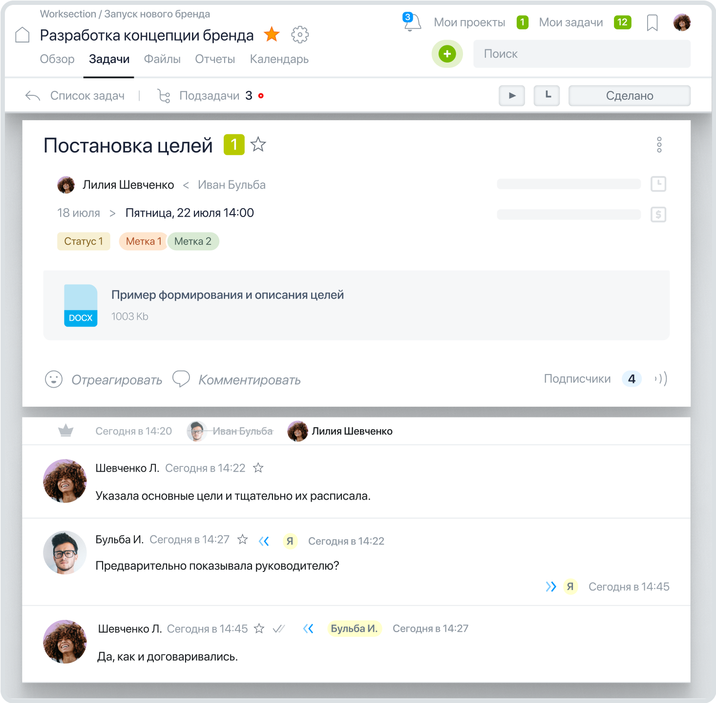 - Управление проектами, поручениями, задачами