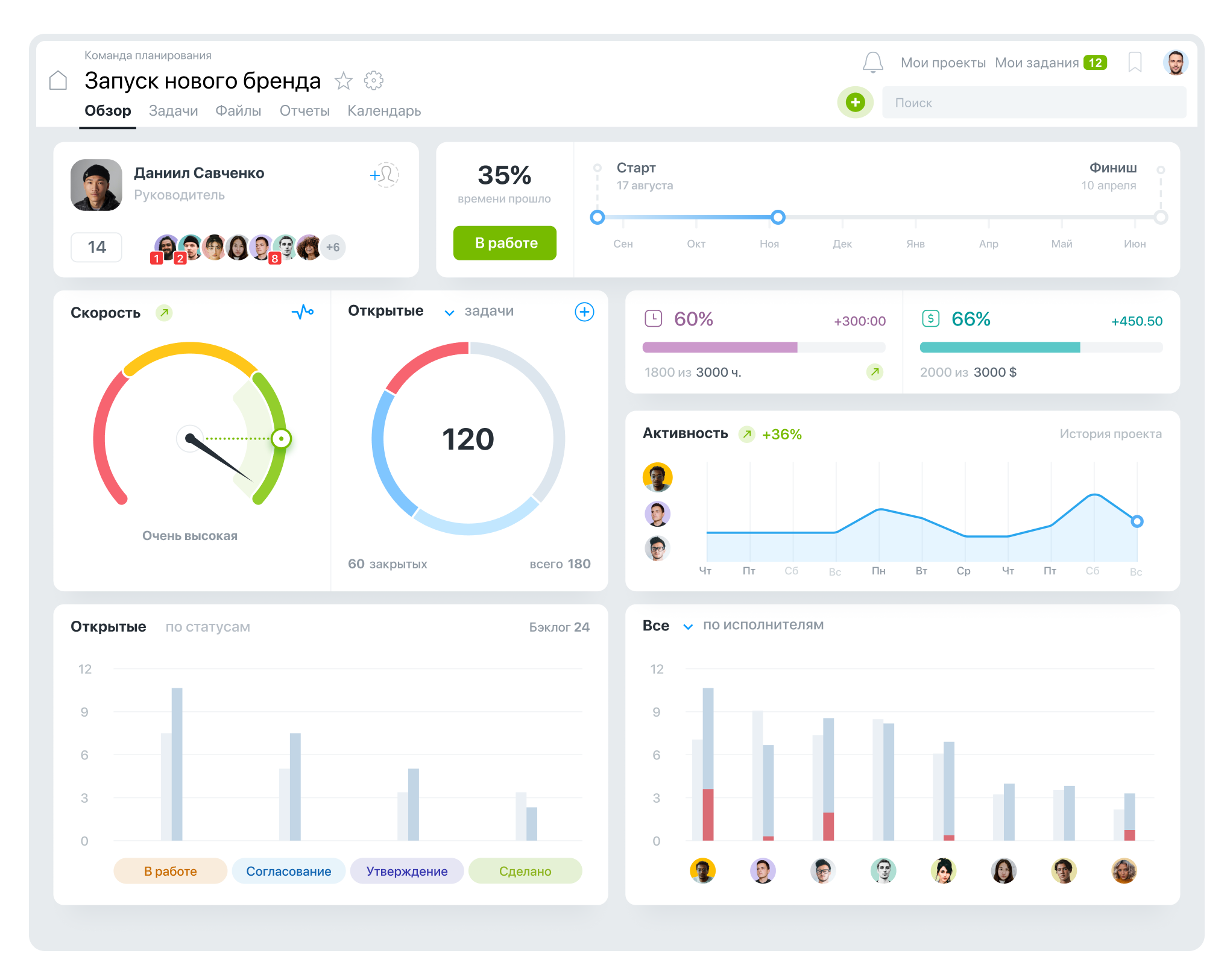 Дашборд проекта в системе управления проектами Worksection