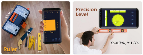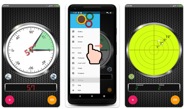 Одно из самых лучших приложений в данной категории. Настолько, что на сайте разработчика продаются гаджеты, которые работают вкупе с этим приложением. Здесь есть рулетка на 300 м/1000 футов, линейка, транспортир и гониометр.