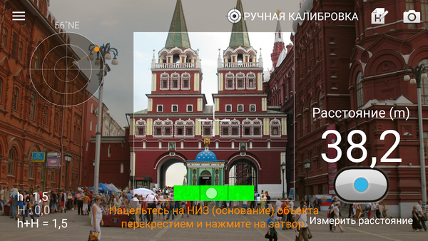 2) Дальномер – измерьте расстояние от камеры устройства до точки на плоскости в пространстве