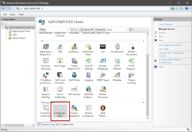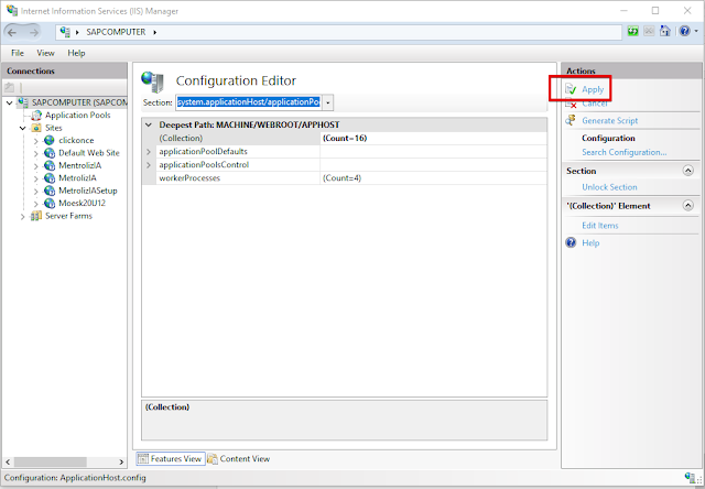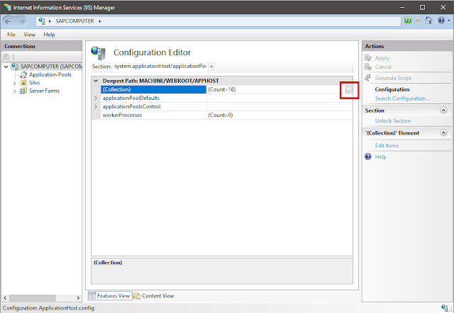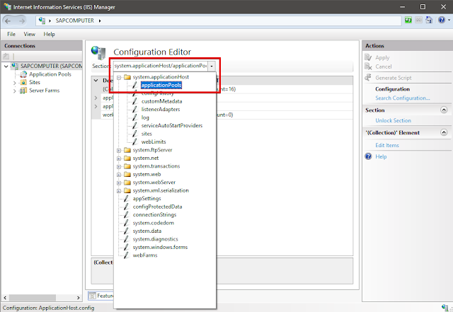 2. В Section выбираем system.applicationHost/applicationPools.