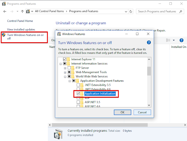 IIS 8.0, 8.5 и 10 — данный модуль уже установлен и вам достаточно только его включить. Если вы используете серверную операционную систему, тогда вам необходимо отрыть настройки ролей и там поставить галку напротив Application Initialization: