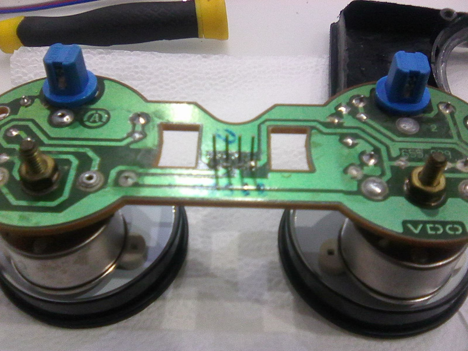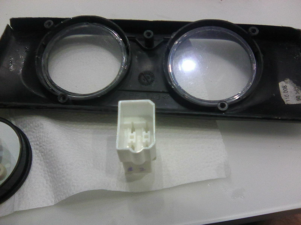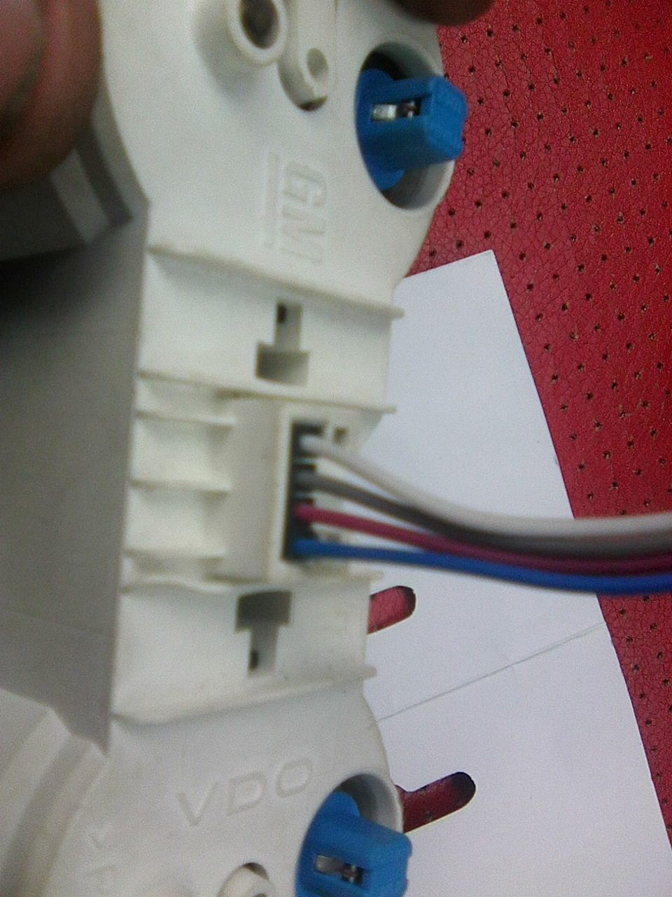 , я полагаю она есть на всех калибрах, возможно даже на верках А, ведь зачем лепить на заводе кучу проводок, когда можно сделать одну и ставить на все, так кстати на многих машинах сделано.Фишка чёрная, 1 пин(нога) коричневый-масса, 2 пин(нога) серый с зелёной полосой-габаритное питание или подсветка, 3 пин чёрный-плюс»+»(при повороте ключа в положение езда) бортовое питание, 4 пин жёлтый с чёрной полосой от датчика давления масла( нужен двухконтактный 90337695 или 14010 Эра).Вот к этой фишке и надо подключаться, так как фишку ответную я не нашёл, и не нашёл фишку на приборы, то я решил особо не заморачиваться, сосед подогнал провода с пинами, отлично подошли на приборы( осталось 6 шт может надо кому), а основную задумал сделать из наших, надо ведь поддержать отечественного производителя, купил 4-х контактную фишку с ответной частью, ещё взял пины «мама» 4 шт.Фишки идут с пинами и проводами, но я не хотел делать скрутки, или склейки, делать так по уму.Отрезав родную фишку, обнажаем провода на 5мм, берём обжиматор, вставляем пин, провод и обжимаем, понятно что не у всех есть такой девайс, можно спаять и на термоусадку, тоже будет работать, а на приборах провода тоненькие хорошо не обожмёт т.к. обжиматор работает от сечения 0,5мм, а там дай бог 0,2, вообщем припаял и на термоусадку. Магазинные фишки распиновал, не особо сложно, усик внутри отогнул чем нибудь тонким типа шила и пин достал, на машине провода стоят 0,75мм, фишку собрал, как и было первый масса, второй габарит и т.д, ответку так же.соединил проверил всё работает. Есть один нюанс про протаскивание проводки в место под приборы, там внутри места под провода нет, я просто рассверлил шуруповёртом на 8мм отверстие просунул провода и потом запиновал на месте.Пришлось ещё подкорректировать стрелку на вольтметр, я её снимал, масло не трогал, делал на месте, подключил мультиметр, приборы разобрал, стрелку поставил по показаниям.Еле осилил писанину, будут вопросы пишите, постараюсь ответить.